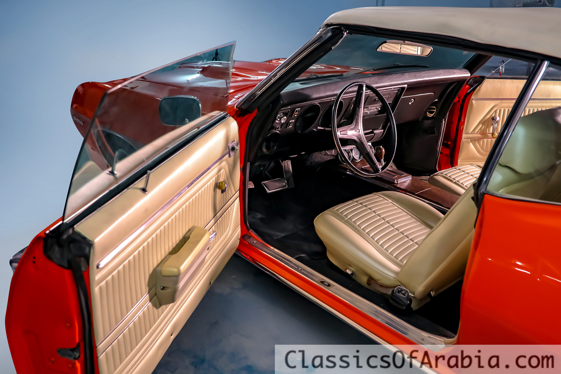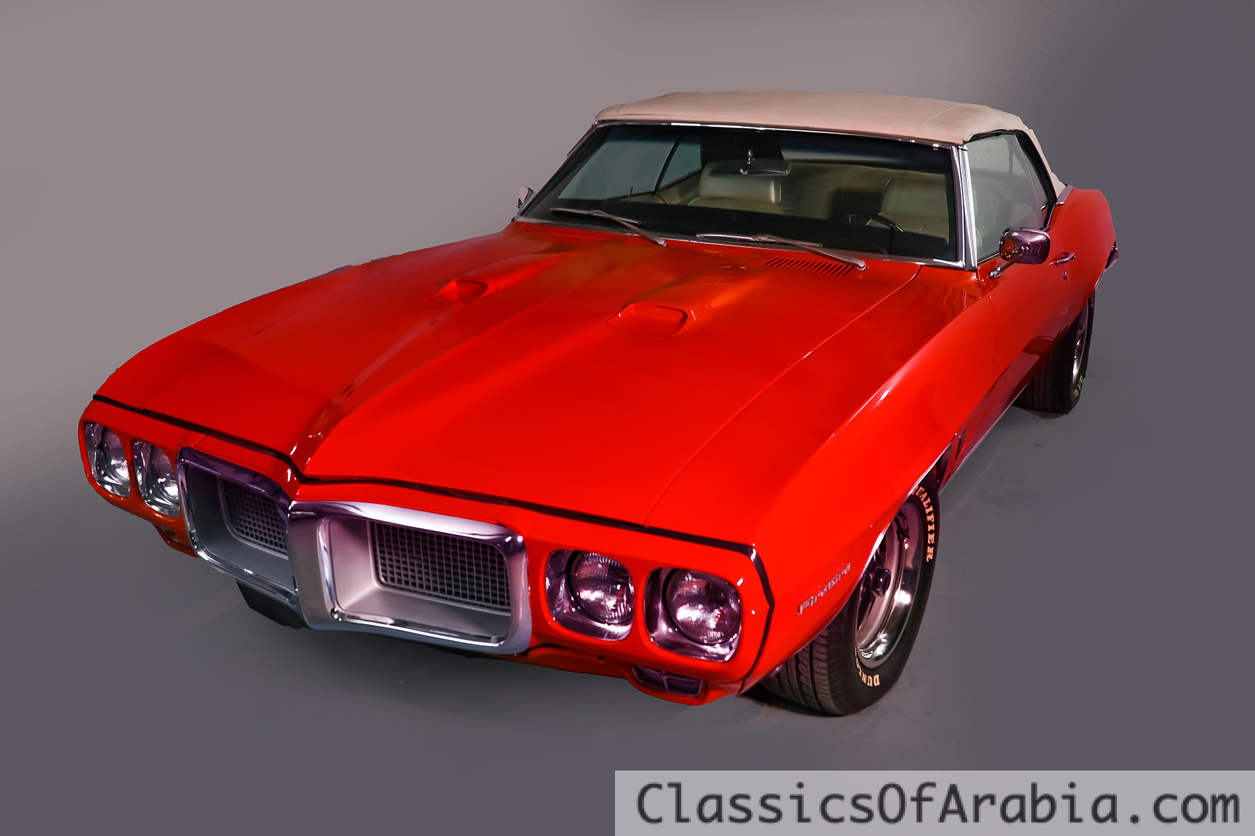 1969 Pontiac Firebird, Red color, 8 cylinder small block engine. The horsepower going as high as 370ph, its automatic vehicle with 3 speed turbo.