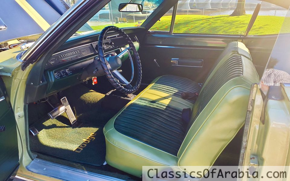 1968 Dodge Coronet | 440 R/T | Very Rare Car | Fully Restored | Like New | American Muscle Year: 1968 Make: Dodge Model: Coronet Engine: 6.3L Cylinder: 8 Cylinder Horsepower: 300 HP Colour: Light Green Mileage: 89519 Transmission: Auto Fuel: Petrol Body Type: Coupe Tyre: 15 inches ——————————- 1. Green on black interior 2. Stock suspension 3. Hurst Short shifter 4. Avenger GT tyres 5. American racing rim 6. Front tyres: 235/60R15 7. Back tyres: 245/60R15 Car is located in UAE | Dubai