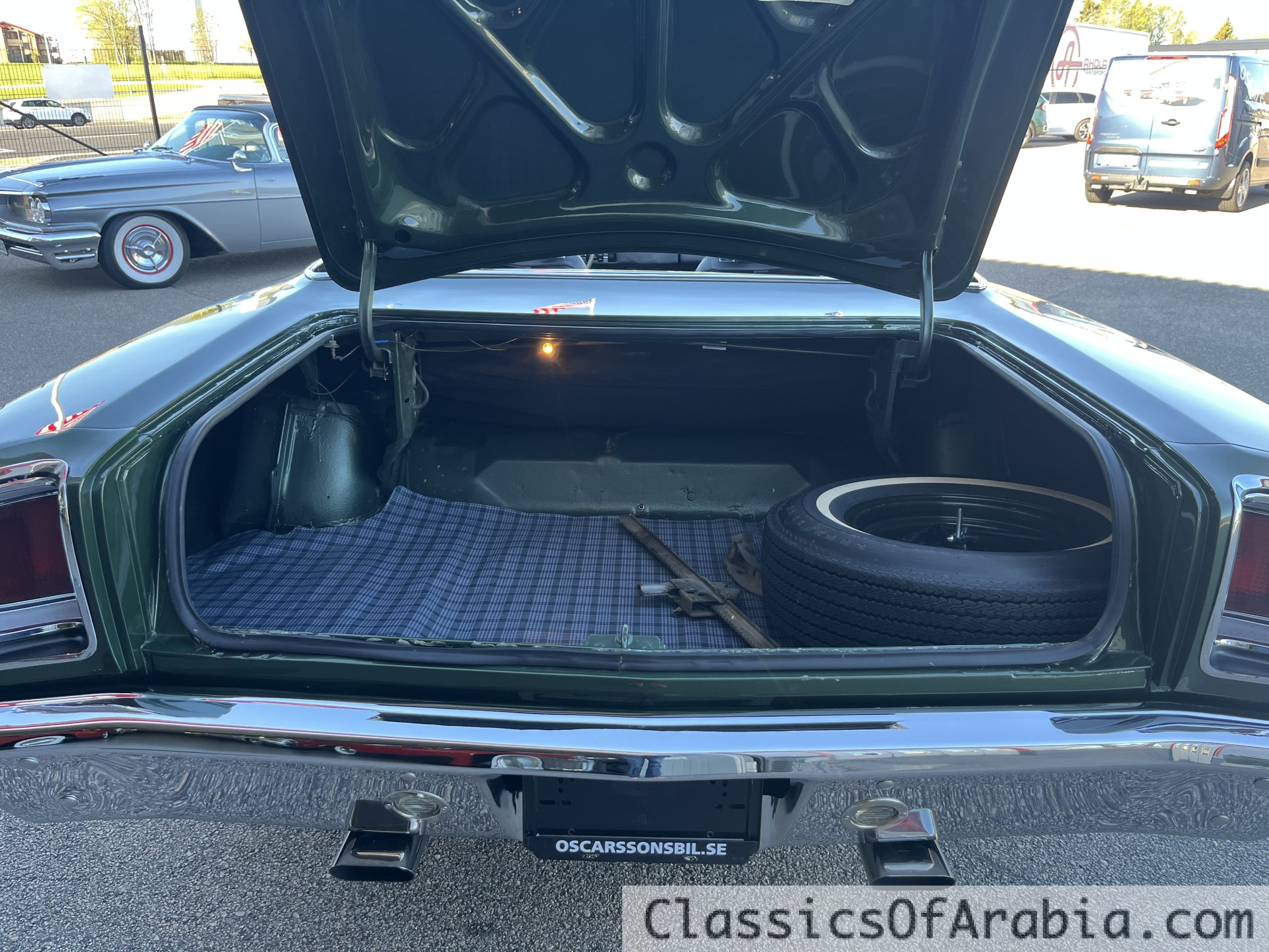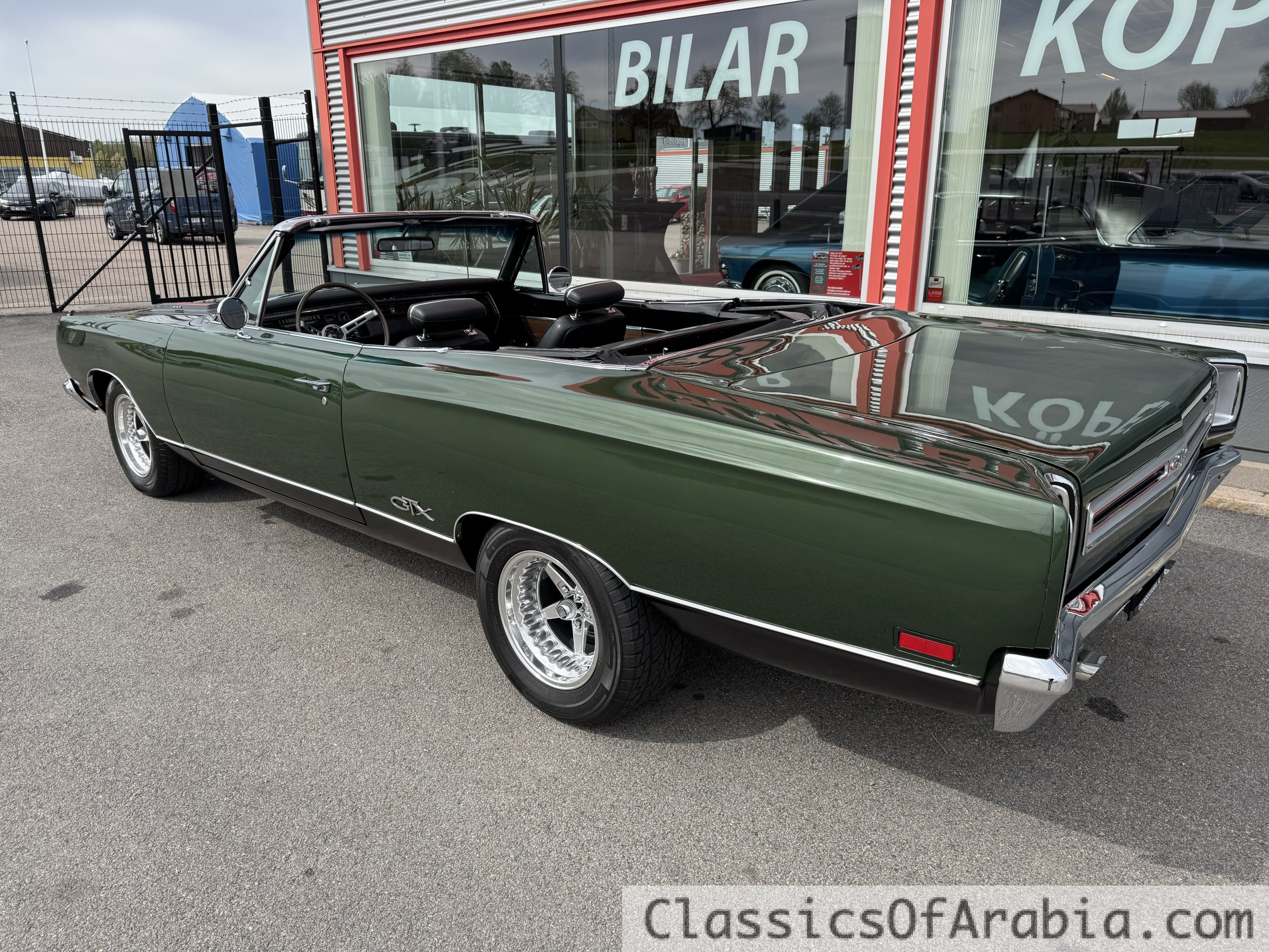 The car was imported to Sweden already in 1975. It is in excellent and correct condition, and still retains its original trunk floor, which is rare. A high-quality repaint was done 16 years ago on a bare metal, straight body. The matching-numbers 440 engine has been rebuilt and has never been overbored. The convertible top and its mechanism were restored two years ago. It is equipped with a Centerforce clutch and brand new 8″ + 10″ Race Master wheels fitted with 235/ 60-15 and 295/ 50-15 tires.